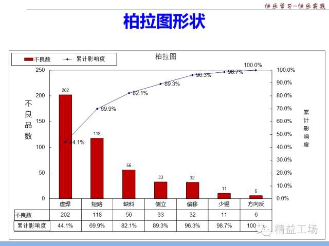柏拉圖也叫重點分析圖、ABC分析圖,由此圖的發(fā)明者經(jīng)濟學(xué)家柏拉圖名字而得名。最早用于分析社會財富,并得出80%的財富掌握在20%的人手中。后來,美國質(zhì)量學(xué)家朱蘭博士引用至質(zhì)量分析領(lǐng)域,用以直觀顯示影響質(zhì)量的主要因素。