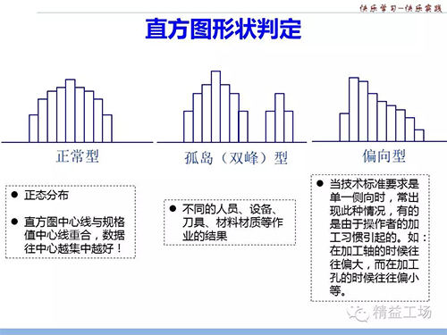 在相同的工藝條件下,加工出來的產(chǎn)品質(zhì)量會有一定的波動性,這樣可以將抽樣數(shù)據(jù)分成若干組,按其頻度在坐標(biāo)上畫出一系列的直方形,并將直方形連接起來,用來觀察圖的形狀,判斷生產(chǎn)過程質(zhì)量是否穩(wěn)定,了解產(chǎn)品質(zhì)量特性的分布狀況、平均水平以及分散程度,有助于幫助我們判斷制程是否正常。