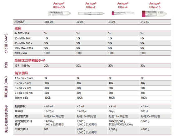 Amicon® Ultra超濾管選擇指南