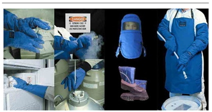 皮膚或眼睛接觸到液氮或冷空氣可能導致嚴重的凍傷。小心處理液氮!超低的溫度很快的燒傷人的肌肉。為避免不必要的凍傷,可以選配相應的配件,比如樣品夾、防凍手套、防凍面罩等。
