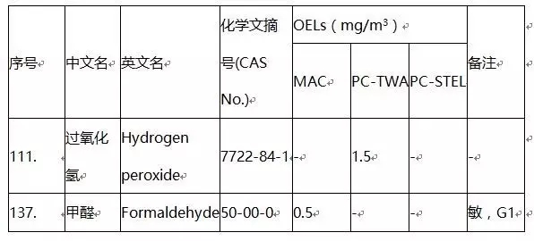 從表中可見,甲醛除了被認為是致癌物,而且是不能在任何時候超過0.5 mg/m3,相對的,過氧化氫的限度是加權平均值不得超過1.5 mg/m3,其中的差異實在懸殊。