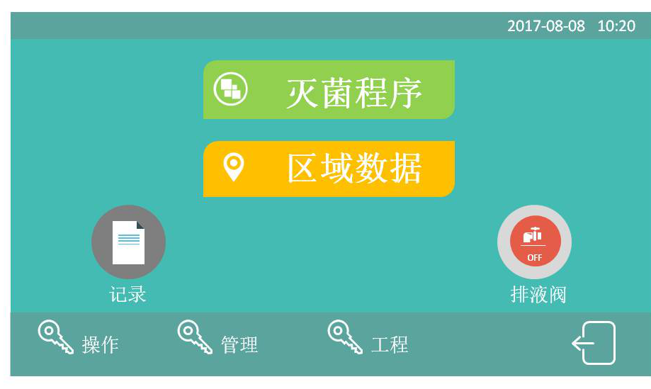 3. 自動記錄的滅菌數據。東弘空間滅菌設備在運行過程中,將會儲存輸入的參數、滅菌配液方案、自動控制的過程記錄,滅菌相關數據更可通過熱敏打印輸出。另外,對滅菌區域相關參數可以模板方式儲存,方便重復調用。而系統可進行權限密碼管理,實現設定、操作、查看等權限分級限定。