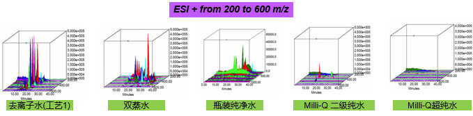 下面我們看一下不同水質對LC-MS背景分析的影響: