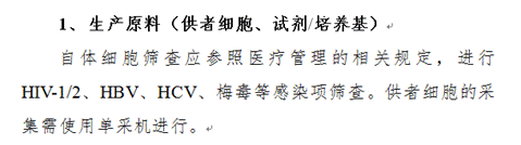 2018年3月13日CFDA發布的《細胞治療產品申請臨床試驗藥學研究和申報資料的考慮要點》(以下簡稱《考慮要點》)中提到對于生產原料的要求如下: