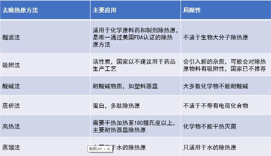 2. 針劑、大輸液、原料藥、抗菌素X光顯影劑陽性產品除熱原;