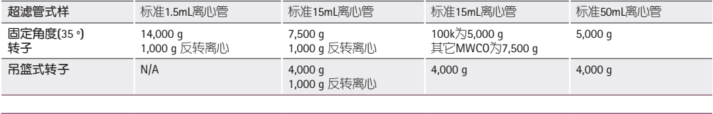 下圖為Millipore官方建議的最大離心力,大家使用時選擇小于或等于該離心力的數值即可。