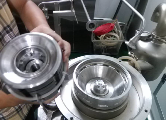 經(jīng)過CIP清洗后的阿法拉伐碟片式離心機內(nèi)部轉(zhuǎn)鼓