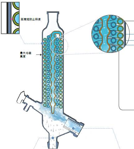 IKA旋轉(zhuǎn)蒸發(fā)儀擁有的三重冷凝盤管回路設(shè)計,可以提供極高效的1600cm2的冷凝面積,在有限高度內(nèi)大幅提升冷凝盤管的接觸面積,有效提高蒸餾效率,減少有機(jī)氣體的溢出。