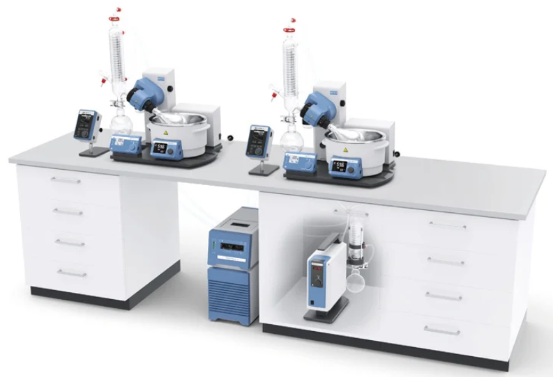 如果實(shí)驗室通風(fēng)櫥數(shù)量有點(diǎn)緊張。IKA實(shí)驗室還可以提供一拖二的解決方案,即:2臺旋轉(zhuǎn)蒸發(fā)儀+1臺RC 2 GREEN basic +1臺數(shù)顯型真空泵(VACSTAR digital)