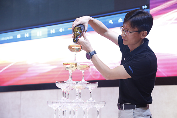 慶祝的香檳讓晚宴氣氛掀起一個新的小高潮。大家歡呼聲不斷!