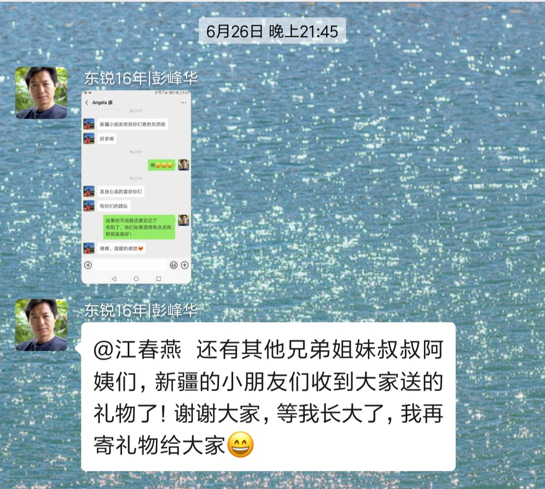 在我加入東銳的1年時(shí)間里,因崗位職責(zé)做了無(wú)數(shù)次東銳公益活動(dòng)的推送。我為自己是東銳人,而我的公司有這樣的社會(huì)責(zé)任感而驕傲。但是沒(méi)有一次推送讓我像今天這樣雀躍,我再次感受到這個(gè)社會(huì)無(wú)限的善意。