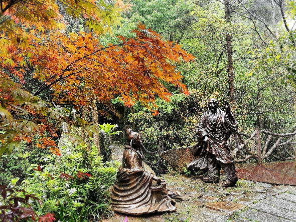 第二站:南岳衡山,五岳之一,海拔1300米,5A級景區,天空正下著雨,2021年4月10-11日,兩天時間。這里是著名的道教、佛教圣地,環山有寺、廟、庵、觀200多處,也第一次見到香火旺是什么樣場景,看了這里的燒香方式那才是大開眼界。因為是清明第二周,團隊多人要回鄉掃墓不能成行,一行十人,打著傘,進南岳大廟拜過各路神仙,由勝利坊開始登山,沿梵音古道而上,見神童李泌識辨神僧。雨一直下,通幽小徑兩邊是各色映山紅,雖不多,但在萬綠樹林中也很出彩;順利到達忠烈祠,才知國民軍在此地有過非常壯烈的戰斗,蔣校長還為這些忠國烈士修建此祠堂,種了大片的紀念松樹林。慢步向上,雨還在下霧已起,近處松林漸朦朧,增加了幾絲神秘,遠處云霧中長出少許參天松,不知是云還是霧,只見如海水般流動。
