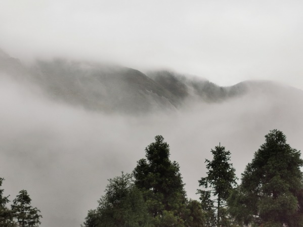 第二天,謝主隆恩,開始沒有下雨,這里的云霧時有時無,每半個小時都變化多樣,真是奇特得緊;可惜,這里的雨也與云霧一樣,來無影去無蹤,摸不到規律。