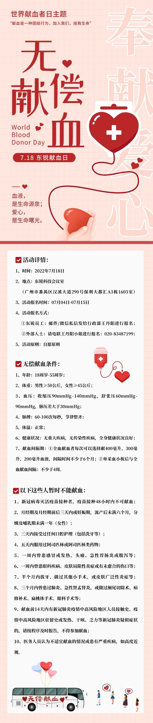 今年我們同樣為進(jìn)一步普及獻(xiàn)血知識(shí),讓更多人理解、關(guān)心和支持無(wú)償獻(xiàn)血事業(yè),將于2022年7月18日在東銳會(huì)議室舉行無(wú)償獻(xiàn)血活動(dòng)。