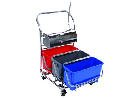 耐用且輕便的小推車帶四只腳輪,兩只腳輪可輕易用腳觸及并鎖住。極強的的靈活性,根據您的清潔標準,可與兩只或