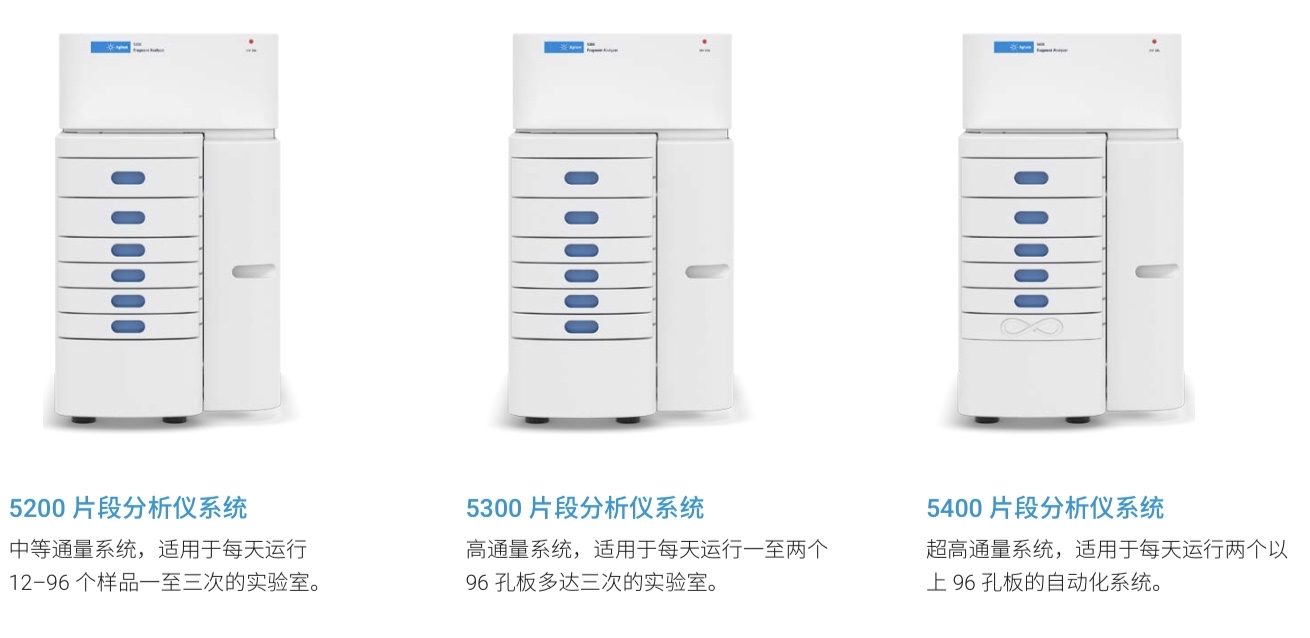 5200: 5200 片段分析儀系統是一臺平行毛細管電泳儀,可以提高實驗效率,可在 15 分鐘內平行分離 12 個樣品。 5200 片段分析儀系統可對 gDNA、小 RNA、cfDNA、大片段 DNA 和總 RNA 等多種樣品進行 DNA QC 和 RNA QC。這些系統可以分離樣品類型的多樣性使這些儀器成為個性化工作流程的理想工具,包括 NGS 文庫 QC 和 CRISPR 工作流程